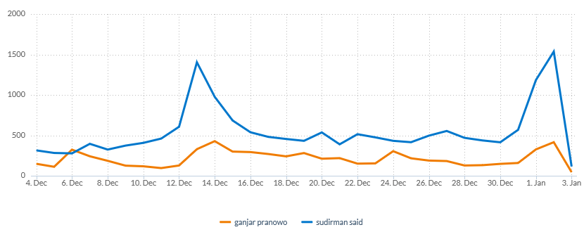 Jadi bagaimana hasil kalkulasinya? Sudah bisa memilih? Sedikit memaparkan hasil kuantitatif pembahasan di internet menggunakan brand24.com, ternyata dalam 30 hari belakang ini pak Dirman lebih banyak dibicarakan daripada pak Ganjar. Meskipun begitu ini jelas bukan patokan untuk memilih. Jadi monggo dipun pigatosaken.